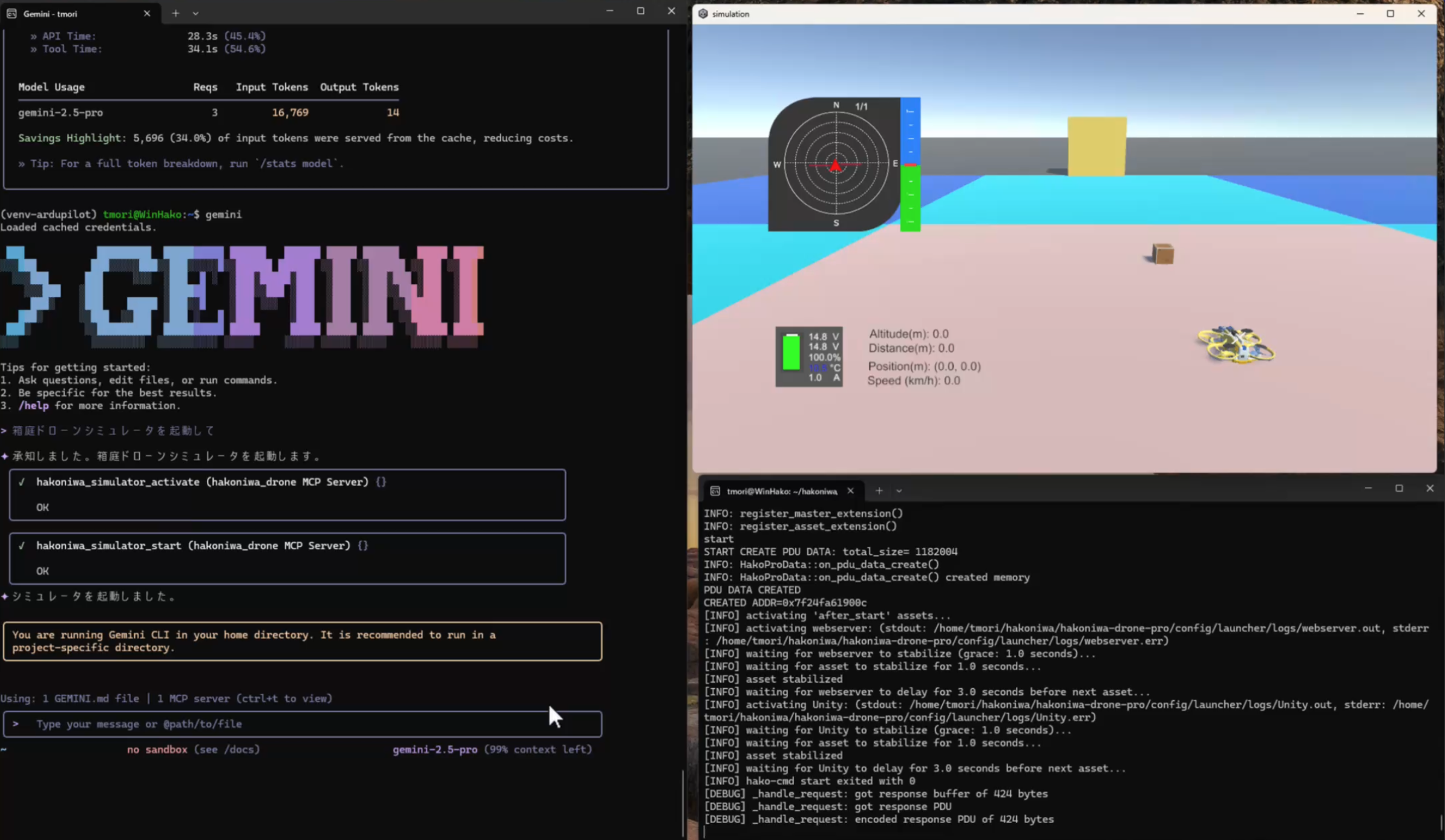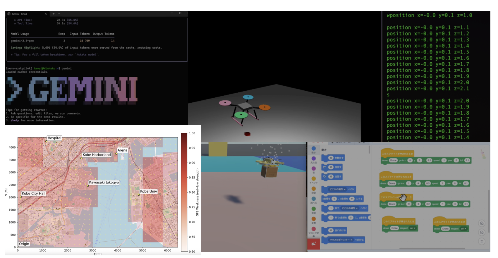 さらに、これは単なる景観的な楽しみだけではなく、人口減少に伴う社会課題に対応するドローン物流サービスにも役立つことがわかりました。Zipline社は、ドローンを使って医薬品配送を時速100kmの最高速度で飛行して輸送しているそうです。今後、国内でも同様なサービスが普及すると思われますが、事前検証はとても大切です。ですので、現実の輸送経路をベースにしたドローン輸送のテストの必要性が高まると思いますし、そのニーズに対して、箱庭ドローンシミュレータは良いポジションになると思いました。箱庭にUnityなどが提供している3D都市データを組み込んで、手軽に事前検証できたら素敵ですよね。