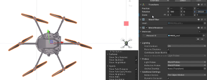 最初のチャレンジでは、機体とプロペラのデータを取り込み、左右のプロペラを一つずつパーツにして、