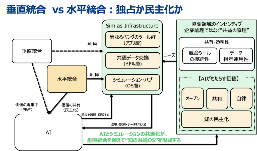 世界のシミュレーションは 垂直統合と水平統合の二つの流れがあるように思えます。