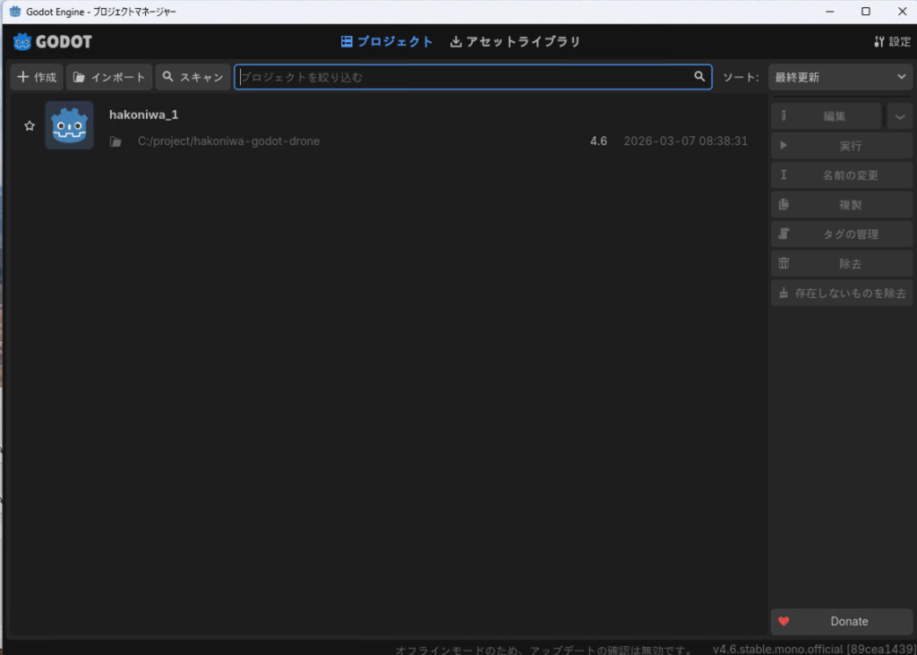 これらに注意すれば、Godot版の箱庭ドローンシミュレータを動かすことができます。